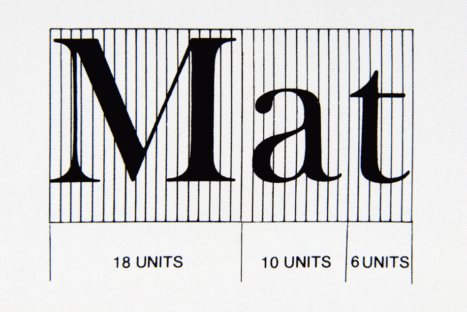 un em est l’équivalent de notre cadratin en France. Il est égal au carré de la hauteur du corps, ce qui fait qu’il est proportionnel à chaque dimension de la composition. Aujourd’hui encore ces mesures sont en vigueur dans les logiciels les plus notoires, Quark X-Press, InDesign, PageMaker etc. Le cadratin est subdivisé en unités, c’est ce qu’expliquent les schémas ci-dessus.