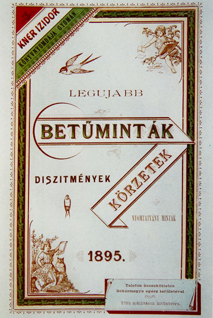 Couverture pour un ‘spécimen’ de caractères plomb, 1895, Kner Izidor.