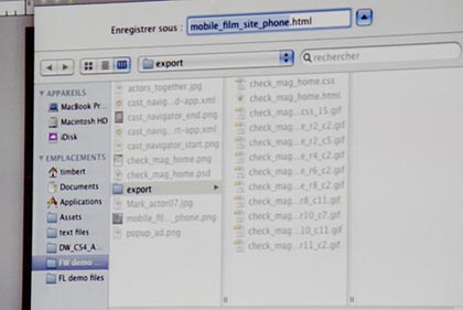 Nouveautés: possibilité après découpage dans Fireworks d’exporter la page ou un ensemble de page en gardant les textes éditables dans Dreamweaver… FW exporte également l’ensemble des pages en CSS modifiable dans DW. Je peux aussi exporter un doc FW directement en Acrobat 9 en gardant les interactivités pour une présentation client soit directement par mail soit sous ConnectNow à des groupes de travail.