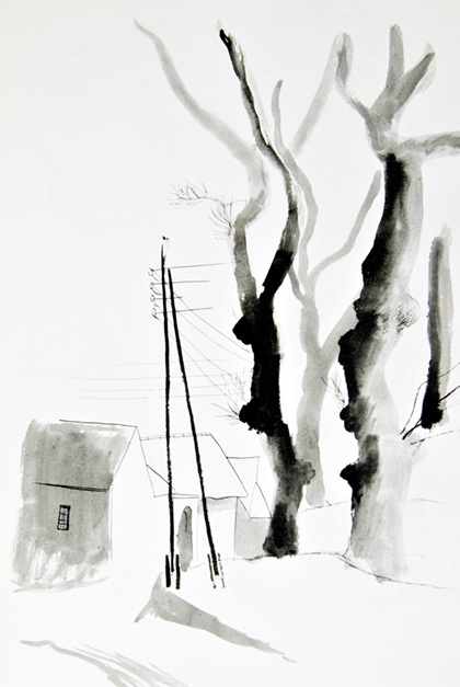 Louons les dieux d’avoir tiré ce peintre-dessinateur (il y a peu) du culte du moi-seul, pour le jeter tout vif sur le papier agile, entre les rouleaux rapides, dilué dans l’encre odoriférente… le matériau de notre temps.