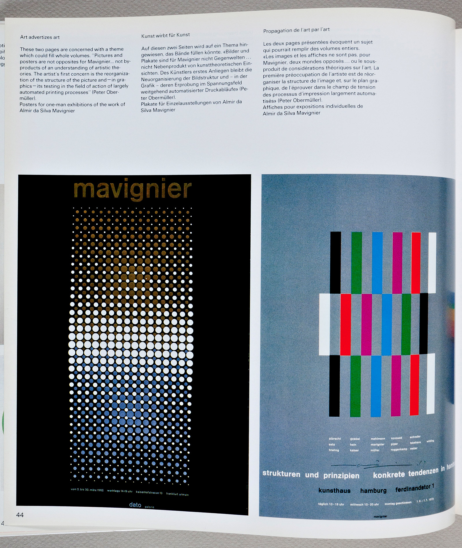 En tant que créateur et exposant, participation à diverses foires professionnelles. Expositions individuelles: Landesgewerbemuseum Stuttgart, College of Printing, Londres, Art Gallery and Museum, Edmonton, University of Alberta, Canada. Ses livres «Emblème Signal Symbole» (trois tirages) et «form+communication» (deux tirages), publiés aux éditions ABC, sont des ouvrages de référence de premier ordre pour les publicitaires du monde entier et de tous les secteurs de la création artistique.