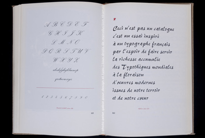 Appréciez la richesse et la versalité des formes alphabétiques, ainsi que la classe d’une présentation très traditionnelle. Et de regarder plus particulièrement les blancs tournants sur chaque page pour en mesurer les codes d’élégances. Enjoy your visit sur Design et Typo.