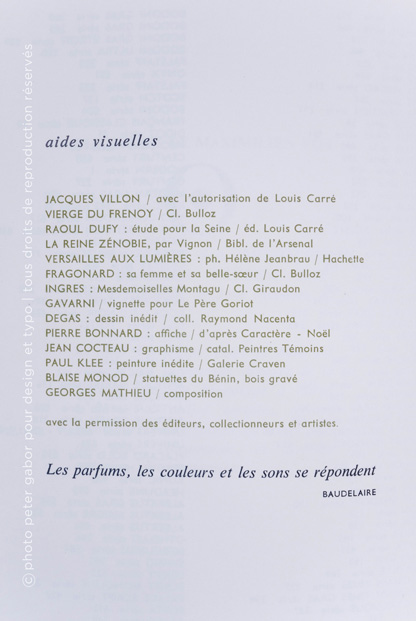 C’est très exactement en 1961 que j’ai accompagné pour la première fois Paul Gabor aux Rencontres de Lure . Il venait de rejoindre les Compagnons en y faisant une conférence en hommage à la famille Knerr, imprimeurs hongrois plus que réputés. C’est à partir de cette date que j’ai fait mes classes auprès des plus grands typographes, puisque j’y ai rencontré Maximilien Vox, John Dreyfus, Jan Tschichold, Hermann Zapf, Albert Hollenstein et j’en passe et DES MEILLEURS. Et c’est précisément Albert Hollenstein qui allait présenter la nouvelle classification de Maximilien Vox, que nous utilisons encore nombre de fois. Non que ce soit la meilleure mais elle a un goût sûr pour faire la synthèse entre les formes typographiques et la chronologie de ces formes.