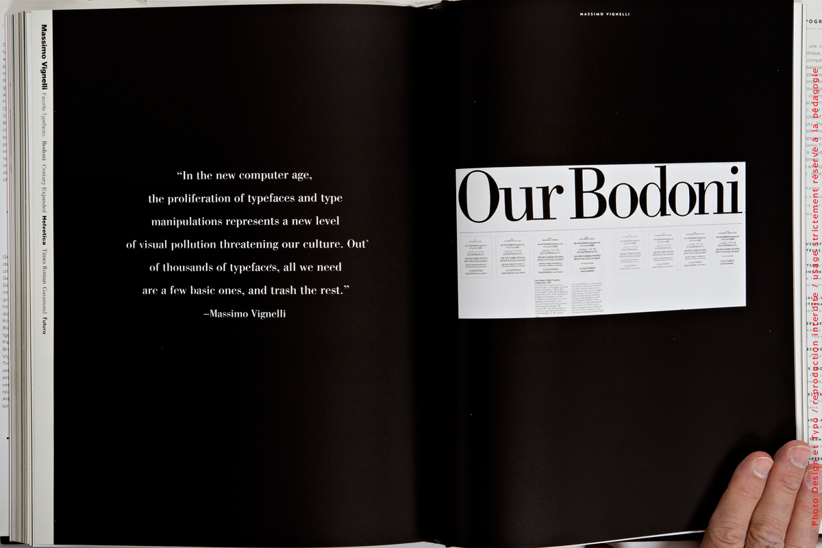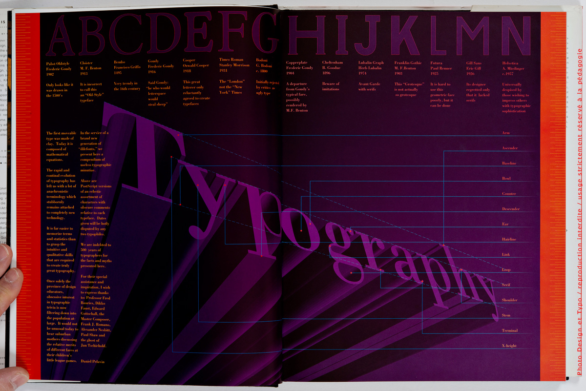 Cet ouvrage a été placé sous d’excellentes hospices puisque des designers comme Roger Black, Fritz Gottschalk, Kit Hinrichs, Takenobou Igarashi, Olaf Leu, Dennis Ortiz-Lopez, Paul Rand, Paula Scher, Thomas Sokolowski, Erik Spiekermann, Bradbury Thompson, Michel Vanderbyl, Massimo Vignelli, Fred Woodward et Tamotsu Yagi se sont penchés sur les contenus pour en donner des critiques et des commentaires.