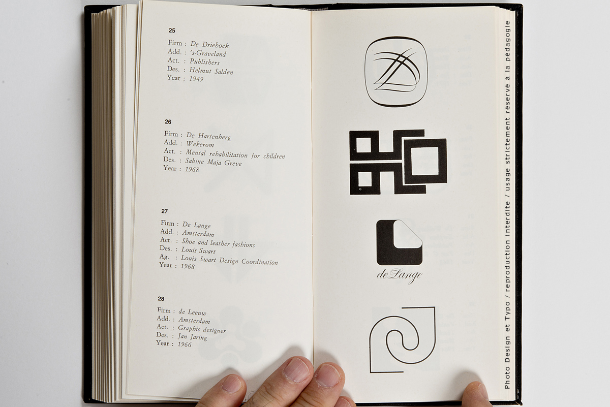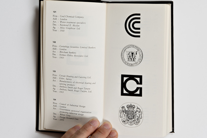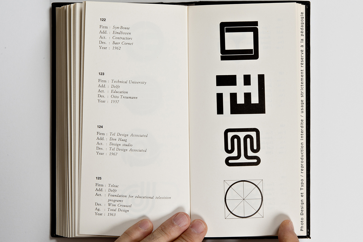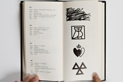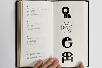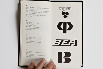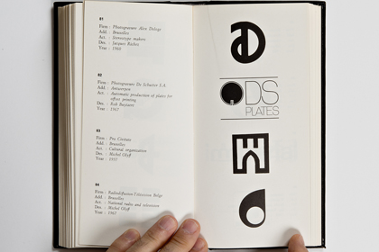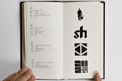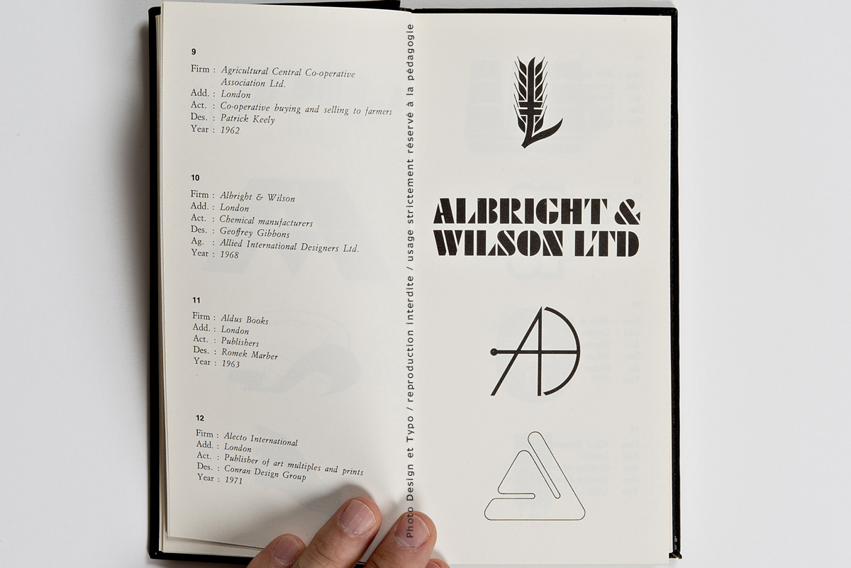 Ce n’est pas moins de 205 pages et environ 700 trademark dont il s’agit là. La fin des marques des USA (publiés dans le premier volume) et une quantité impressionnante de marques venant d’Angleterre, d’Irlande et du Benelux. Chacun des trademarks se trouve accompagné de la nomenclature de ses créateurs: le Client, son origine géographique, son secteur d’activité, le Designer et l’Agence en charge du budget ainsi que l’année de sa création. On imagine sans peine le back office nécessaire à ce travail de fourmi à une époque où Internet n’existait pas encore. Il est à parier que tout ce travail organisationnel a été effectué par courrier postal et peut-être par téléphone.