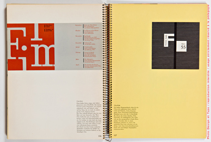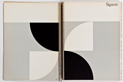 Cet album témoigne de la versatilité des moyens typographiques pour créer, logos, identités visuelles, chartes graphiques et éditions. En somme nous sommes en face d’un véritable langage graphique aux ressources infinies, où l’on voit que la lettre devient image à l’instar de ce qu’écrivait Massin dans ses ouvrages. Grande tradition suisse de même. Publié à Lucerne en Suisse en 1957, nous sommes bien après la guerre. Dans les années 50. Le monde vit la reconstruction et ces exemples de lettrages témoignent de ce désir d’architecturer l’espace, d’en faire un lieu construit à la Bauhaus. On peut regretter bien sûr que les Suisses aient peu emprunté au constructivisme Soviétique, bien qu’ayant été parmi les plus fervents promoteurs du mouvement DaDa, mais il n’en demeure pas moins qu’ils ont été largement en avance sur le reste de l’Europe. À l’exception peut-être de l’Allemagne pour les raisons que l’on connait, et l’Angleterre qui a toujours accordé une importance capitale à la calligraphie et à l’identité visuelle. Bien entendu je n’oublie pas les apports graphiques des néerlandais ni des italiens… mais voilà, il faut bien toujours qu’il y ait une première fois :) //peter gabor